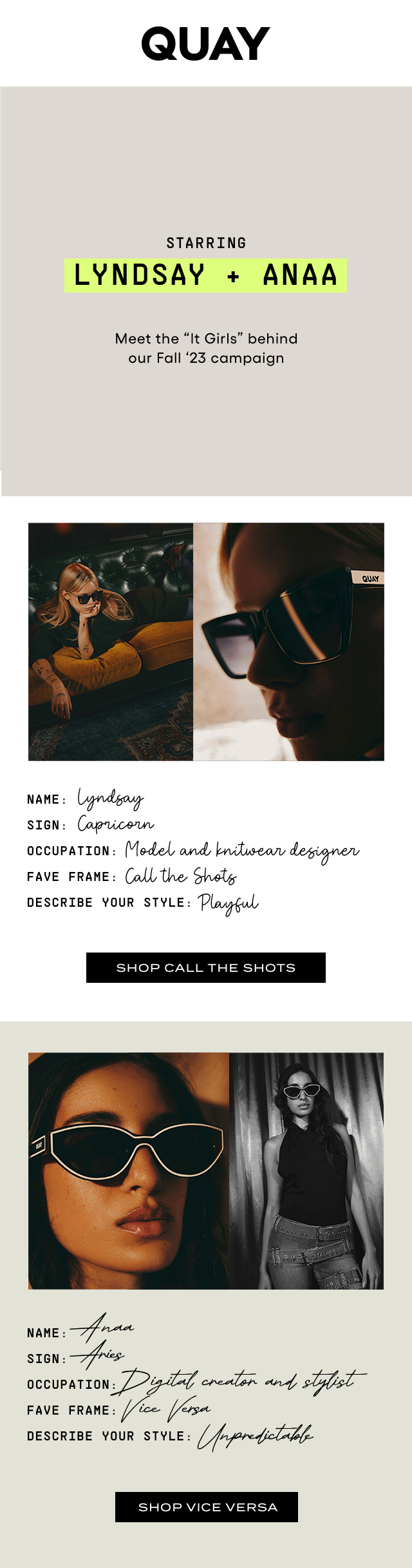 Fall campaign showcasing the suite life of fashion it-girls featuring Anaa Saber and Lindsay Vrckrovnik